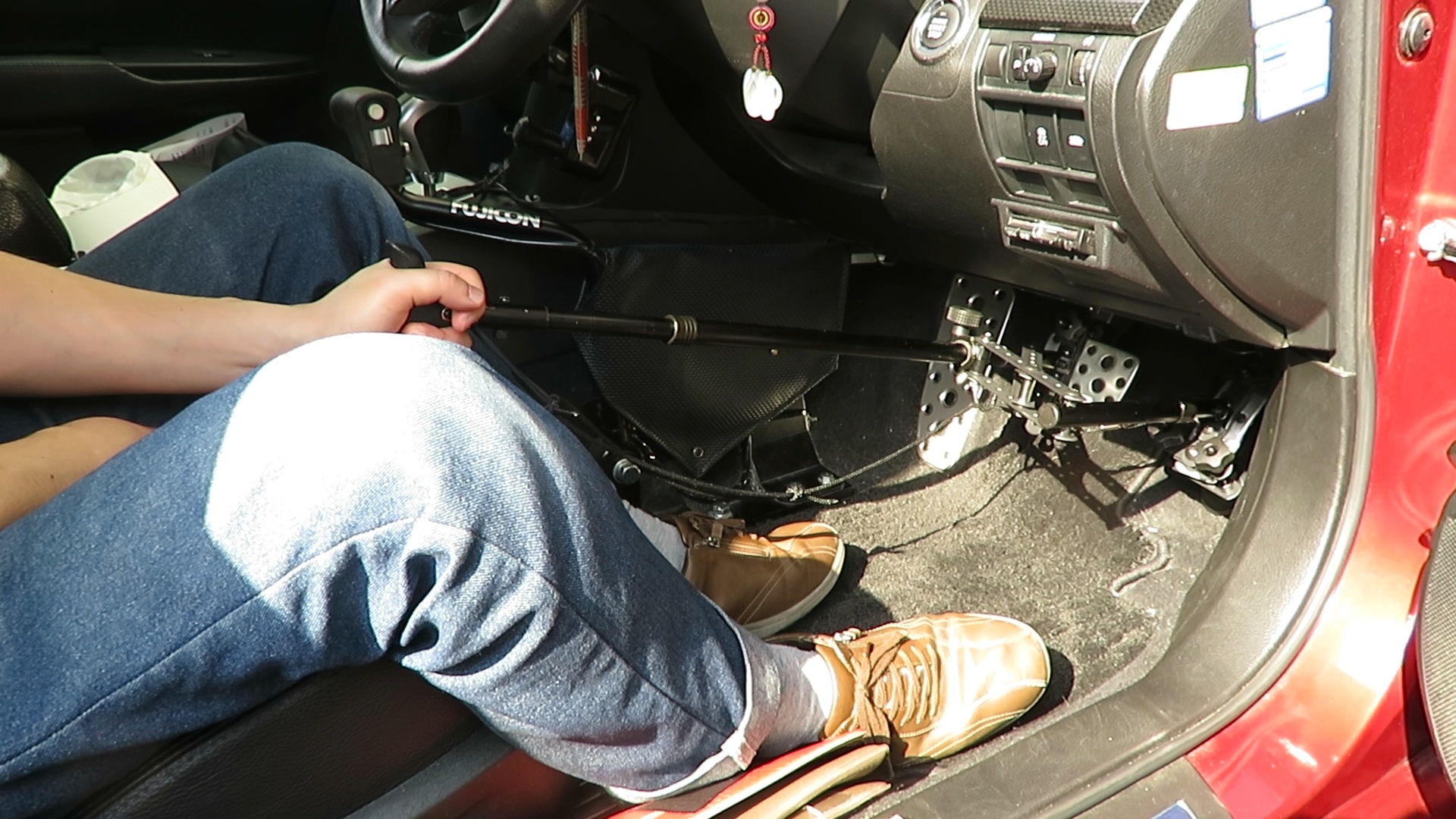 代車やレンタカーのように短期間の利用に必要な、低価格の携帯用手動運転装置の製作依頼から開発を始めました。 |