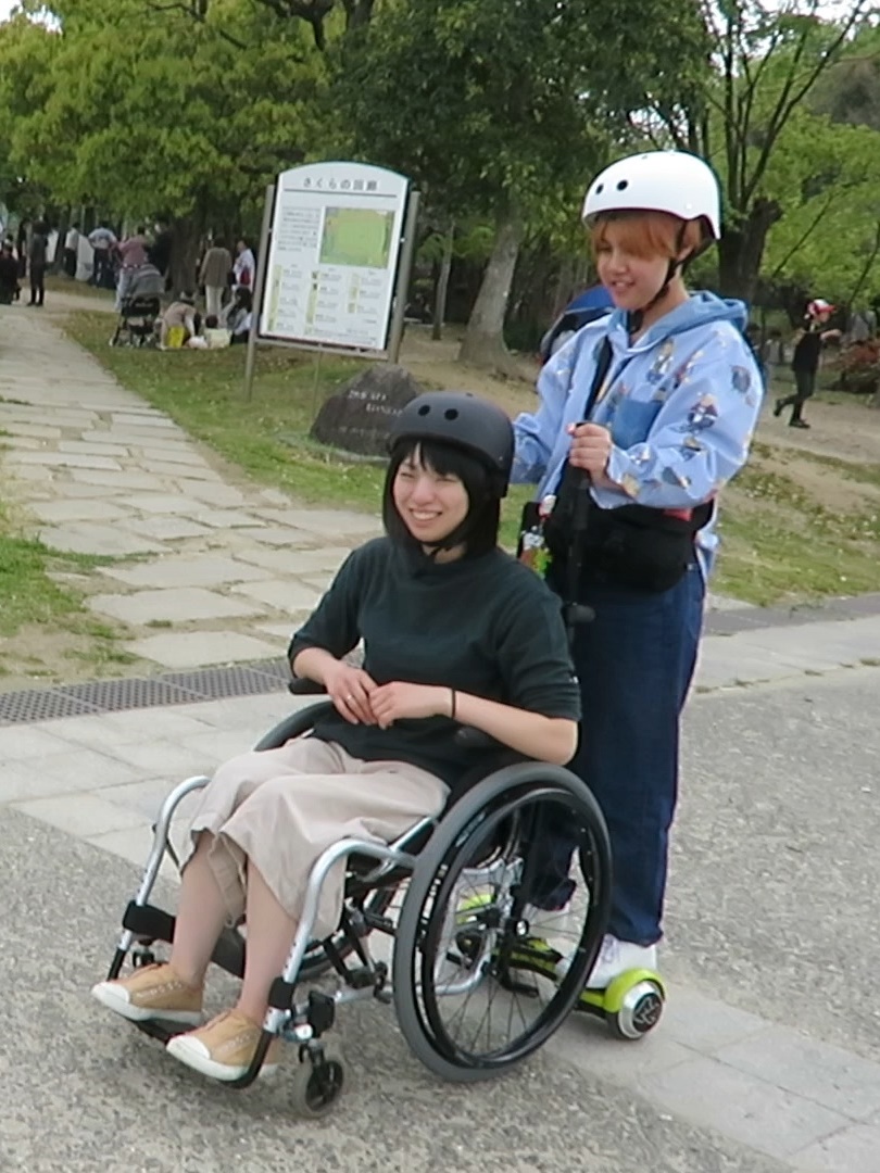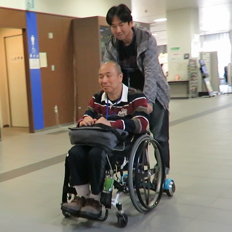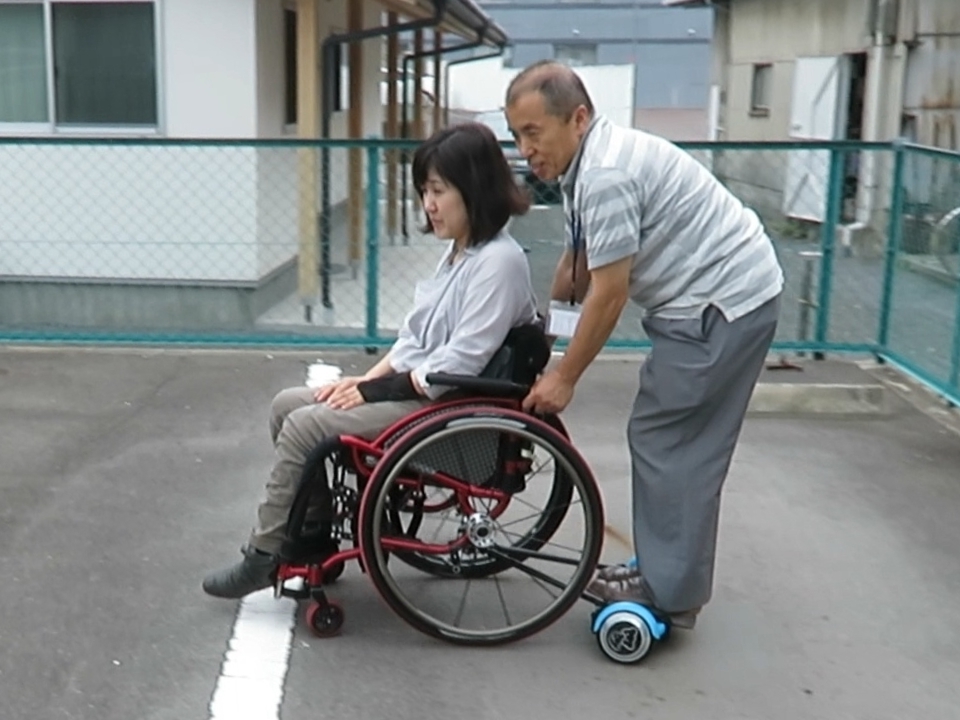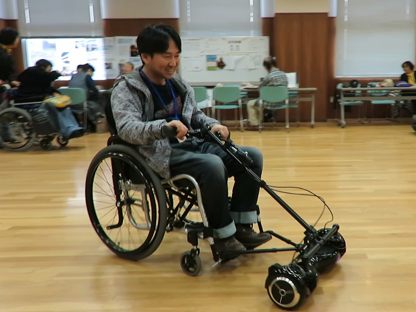 手動車いすを電動車いすにするための、バランススクーターを使った低価格の車いす電動化ユニットです。介助の方が楽になるよ う、電動で動かすタイプもあります。 |