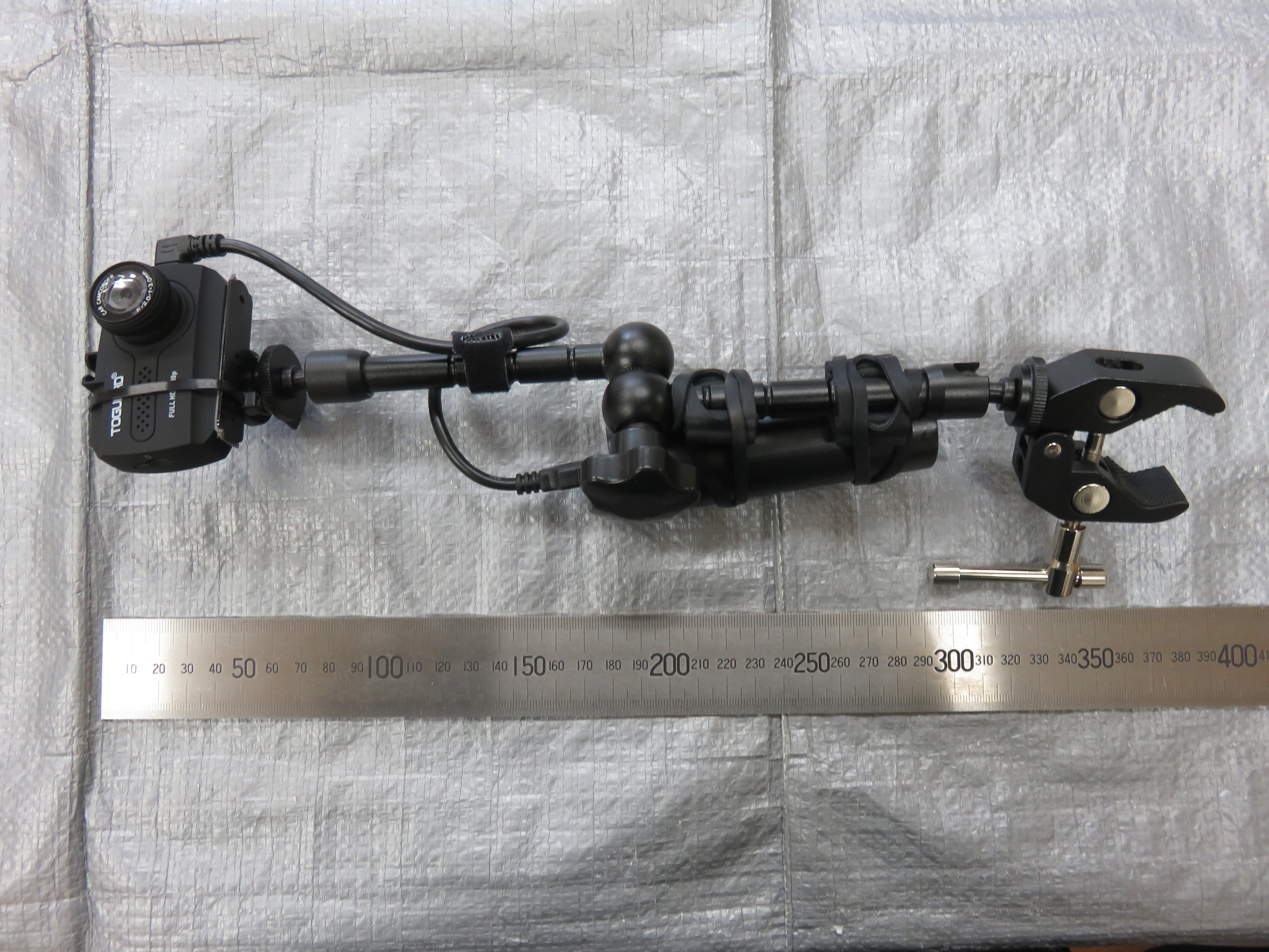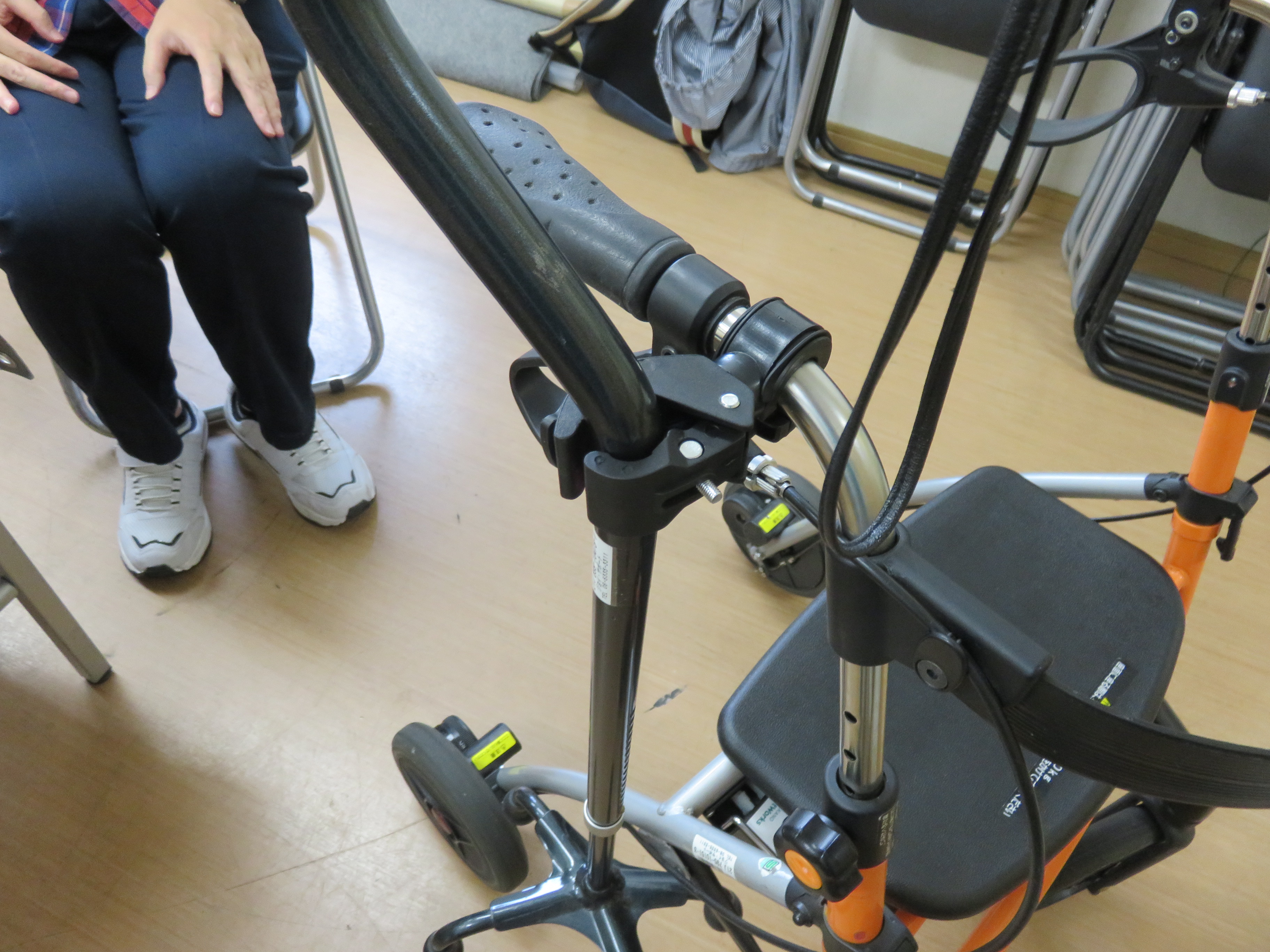 杖ホルダー 歩行器に杖が固定できる物を希望されていた方に、以前に購入していた自転車、バイク用のLEDライト・クランプホルダーを取