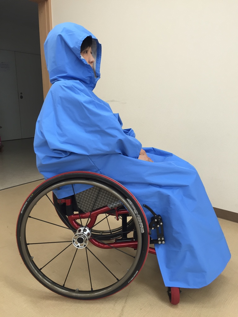 市販されている車いす用レインコートはたくさんありますが、車いすの形状や体型などでどうしてもしっくりこない場合がありま