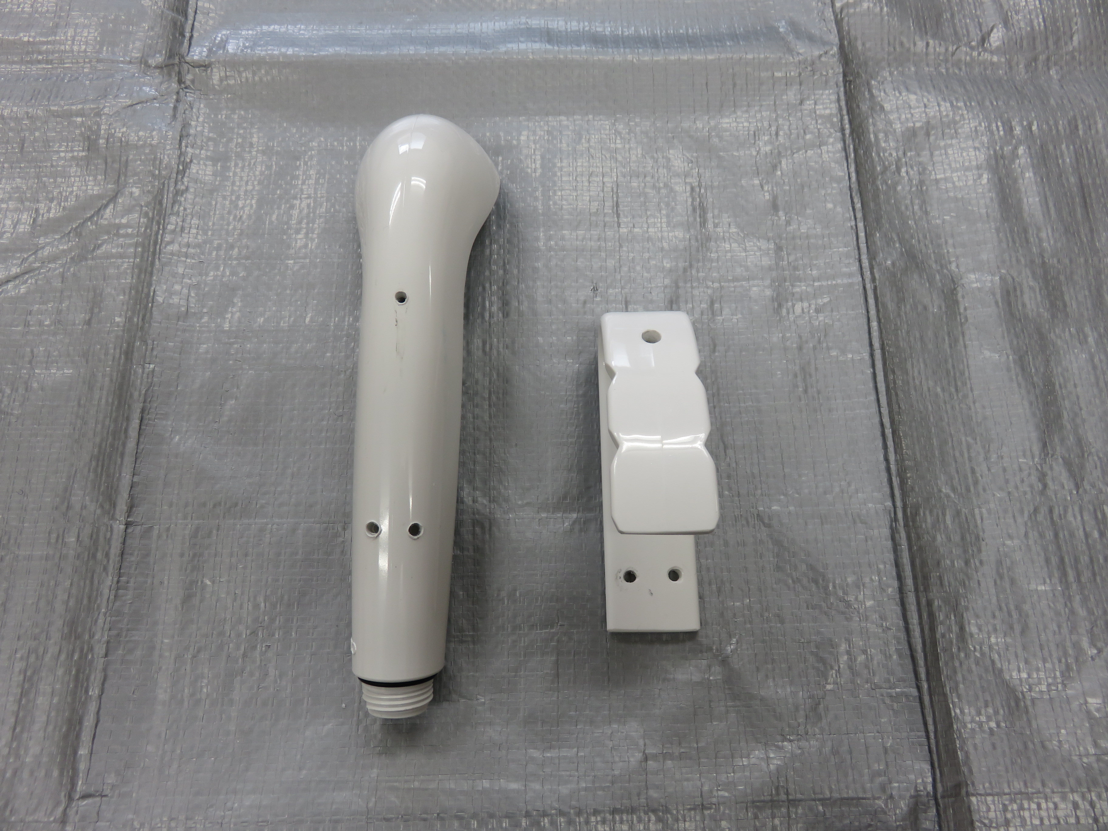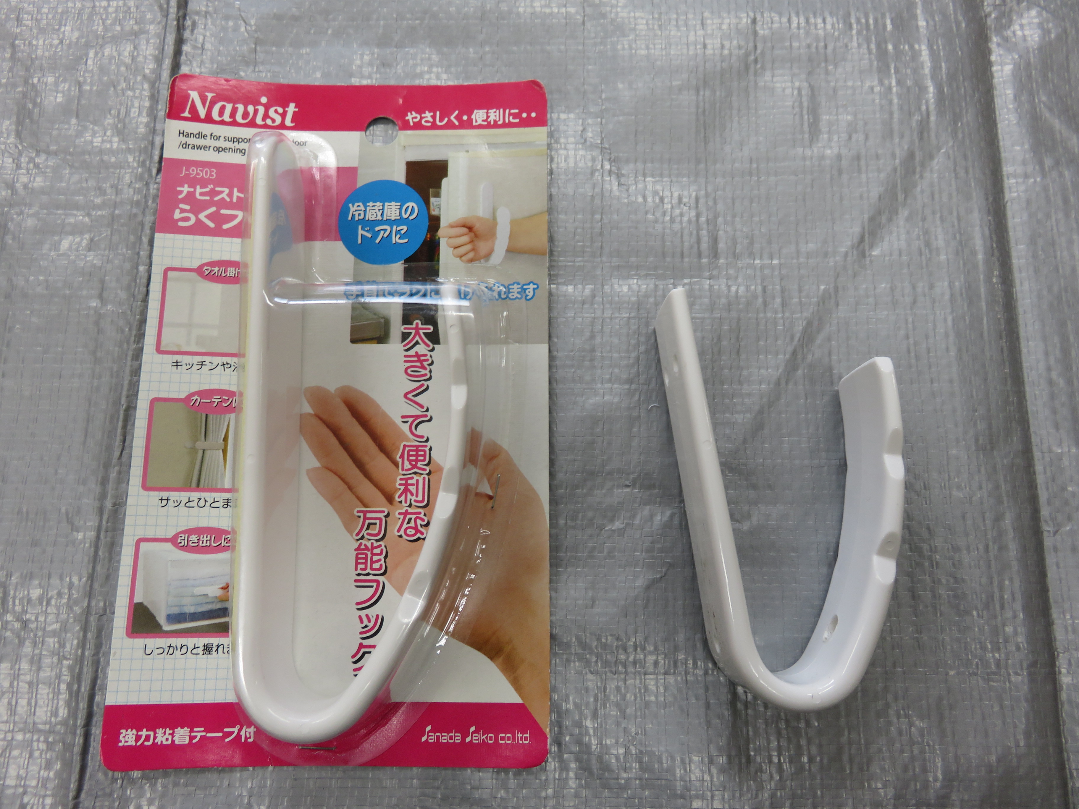 シャワーヘッド用自助具 熱可塑性樹脂で作った物が劣化してきたので、100均で見つけたフックを加工してタッピングビスでねじ止めしてみました。 |