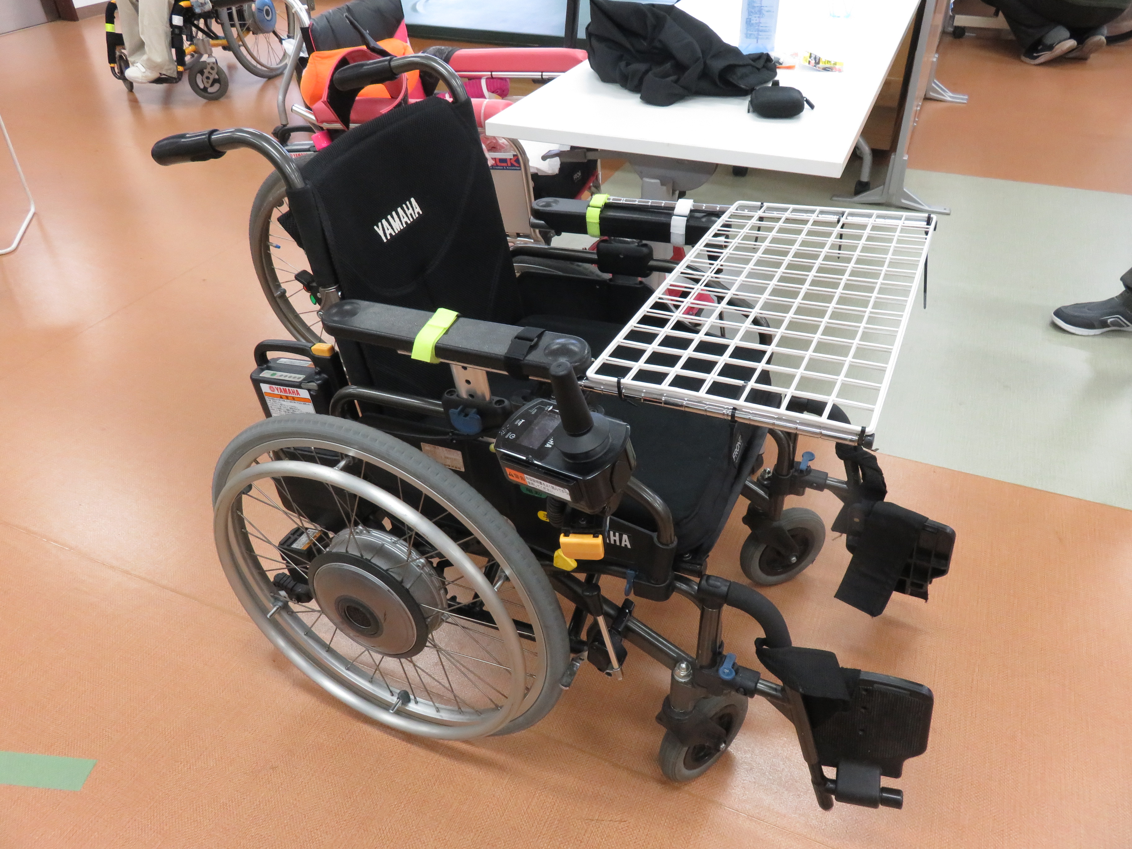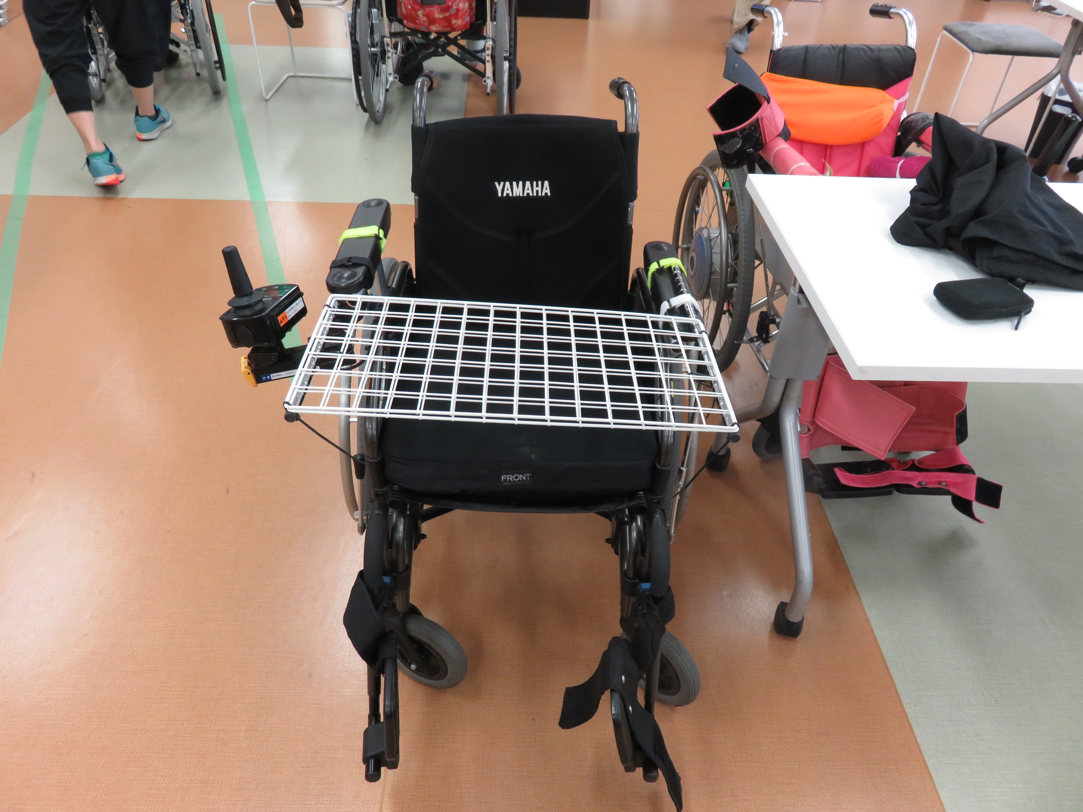 車いす用簡易テーブル 同じデイサービスを利用されている方から、カバンを置けるテーブルの製作依頼がありました。 |